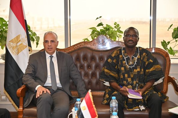 وزير الموارد المائية والري السيد الدكتور أوغسطين كابري وزير البيئة والمياه والصرف الصحي بدولة بوركينا فاسو ، والسادة ممثلي السفارة البوركينية بمصر بمقر الوزارة بالعاصمة الإدارية الجديدة .